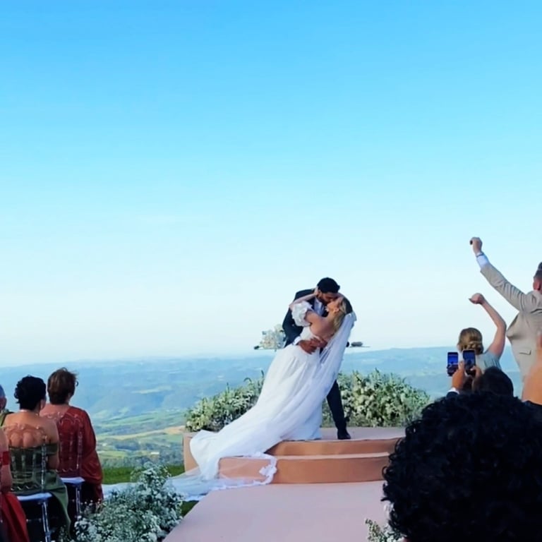 A pintura ao vivo transforma o casamento em uma experiência que vai além do visual. A obra é criada durante a celebração, unindo arte, entretenimento e a história dos noivos em uma única memória.