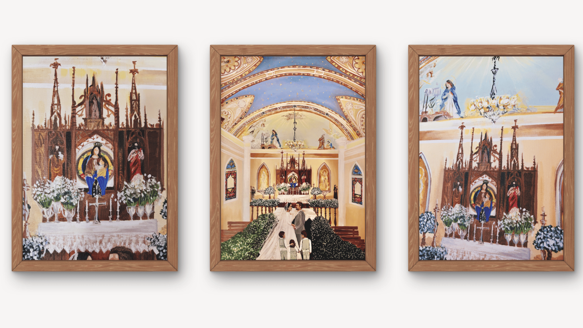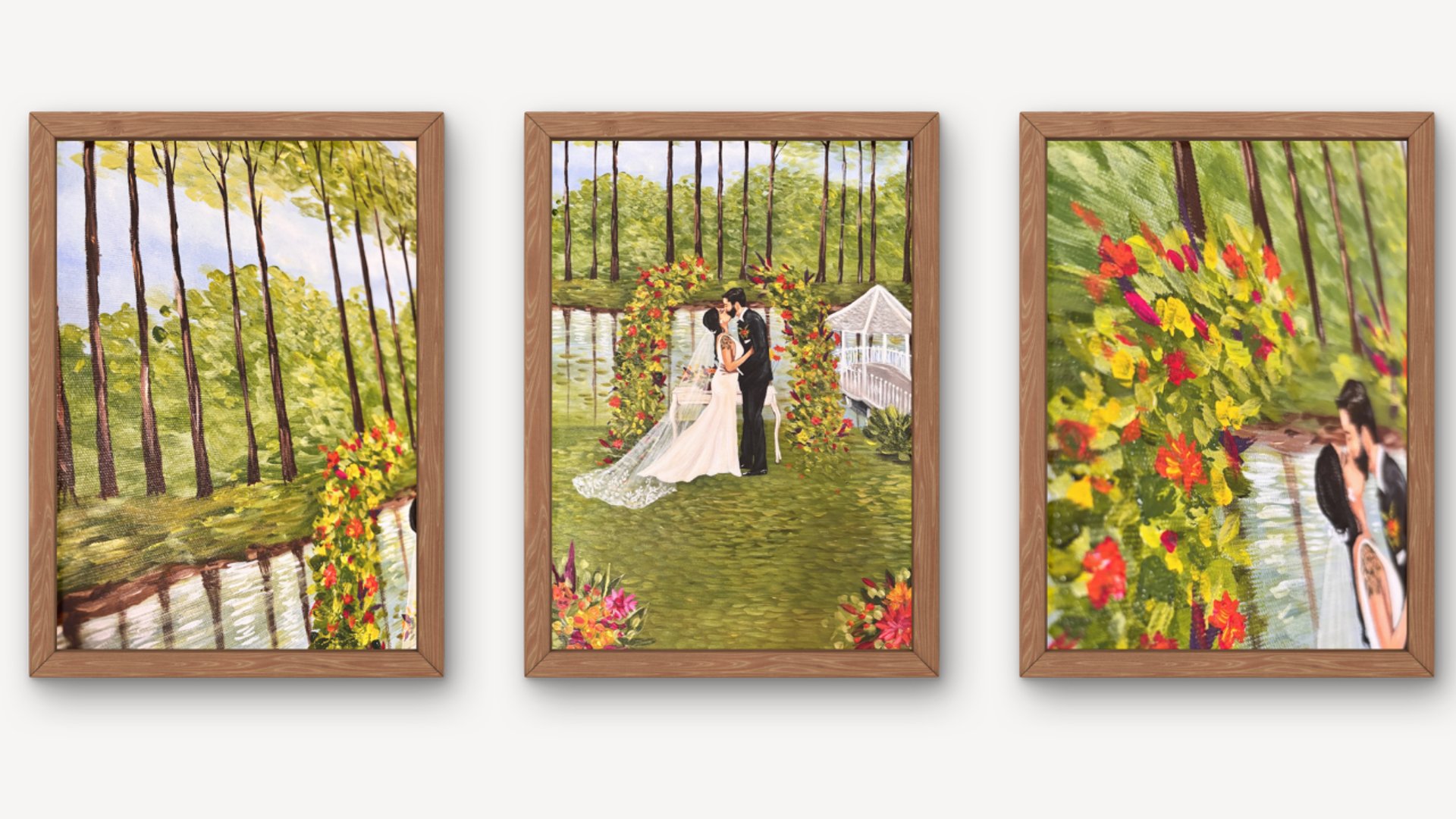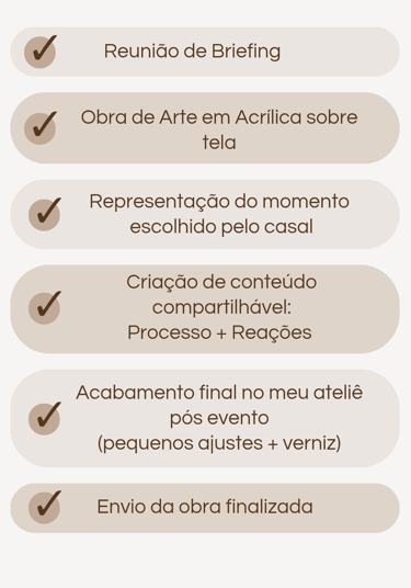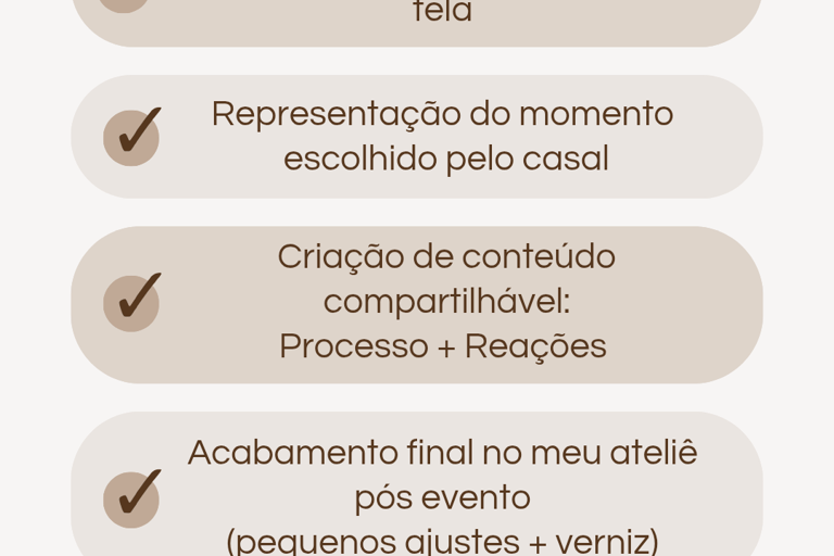 Para os noivos, é levar para casa uma pintura feita naquele dia, com significado real e duradouro. Uma lembrança física que continua contando essa história com o passar do tempo.