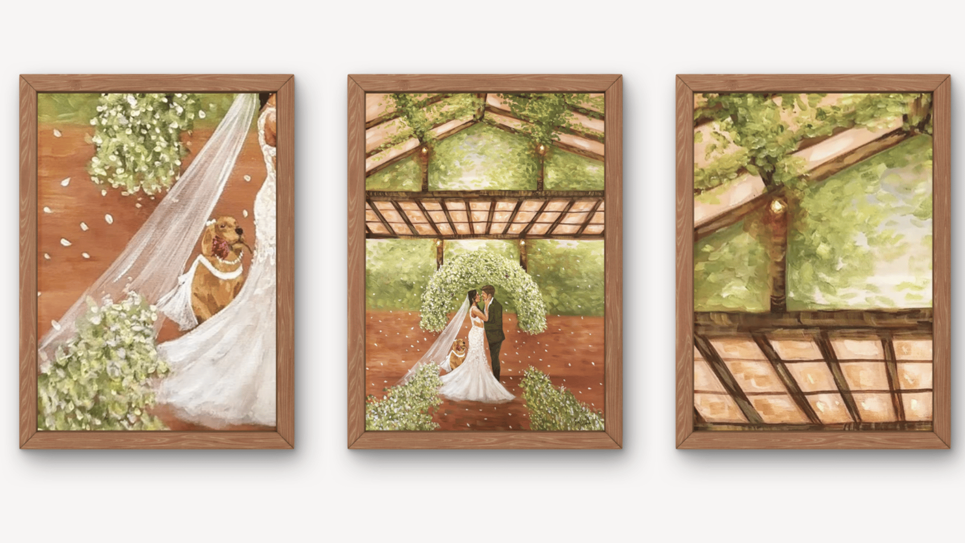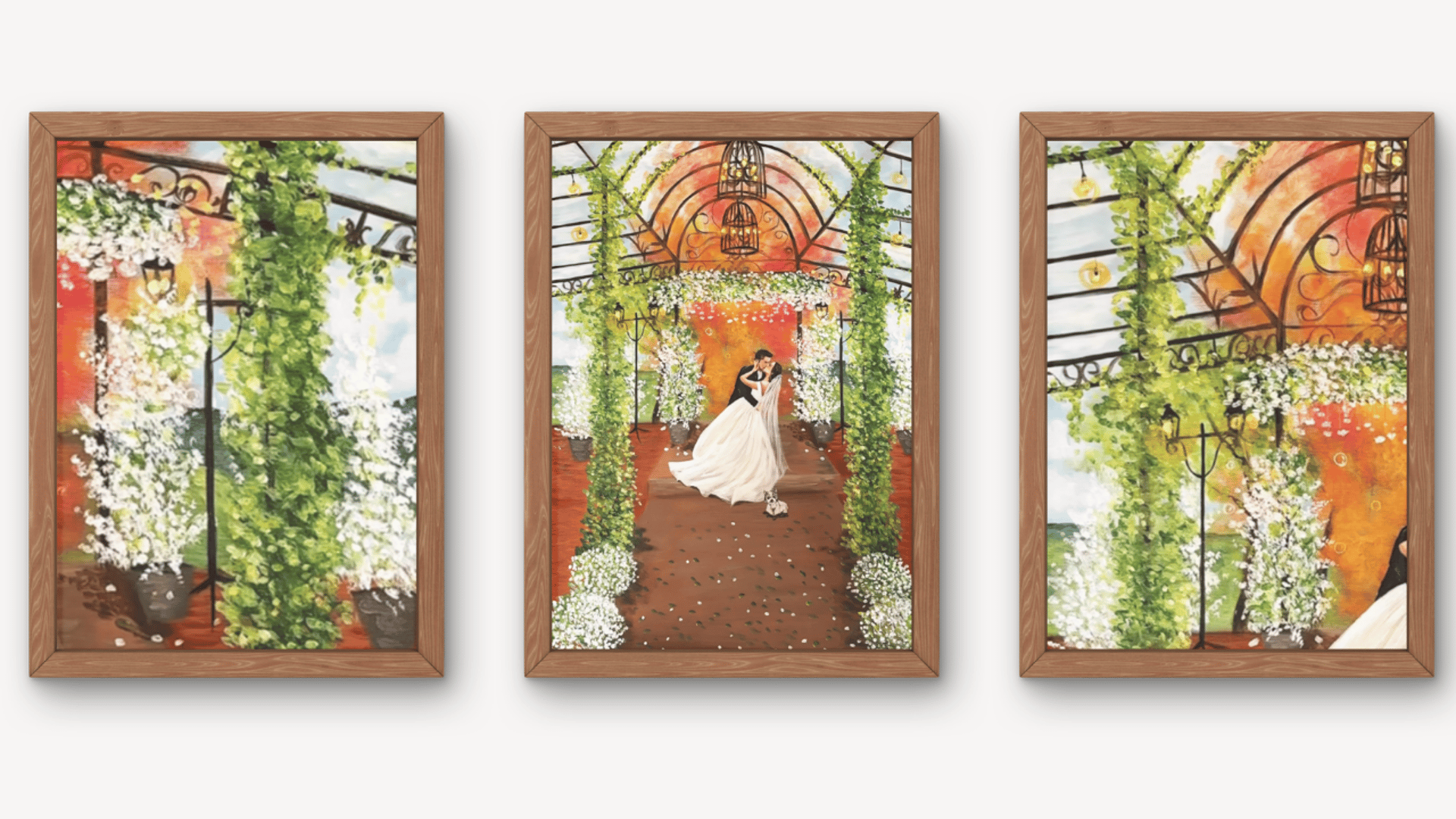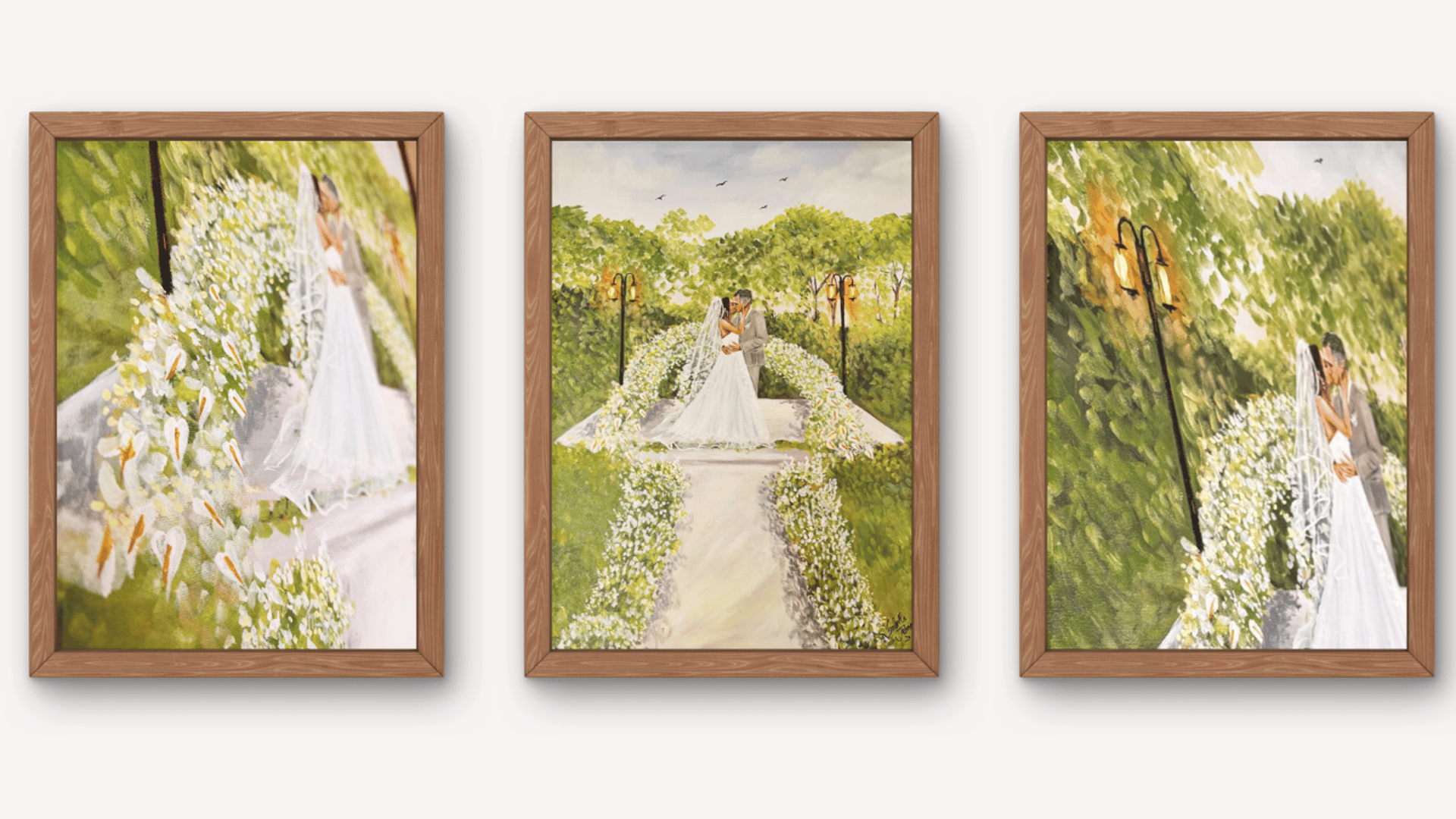 Para os noivos, é levar para casa uma pintura feita naquele dia, com significado real e duradouro. Uma lembrança física que continua contando essa história com o passar do tempo.